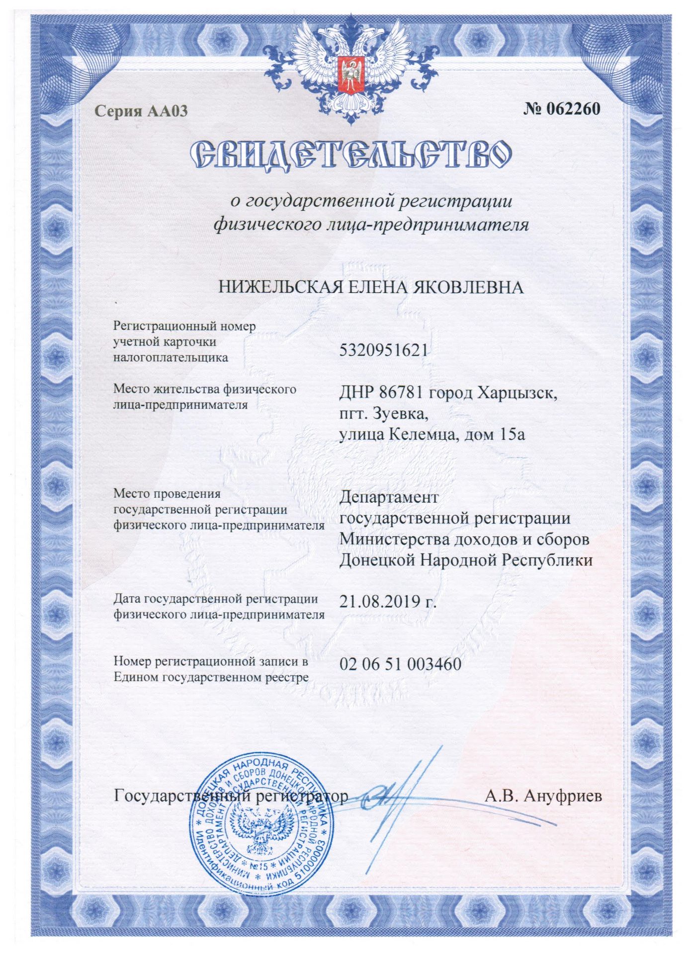 Уставные документы ФЛП Нижельская Е.Я.
